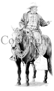 "The Clinician" 19" x 27" Pencil drawing of legendary Ray Hunt.